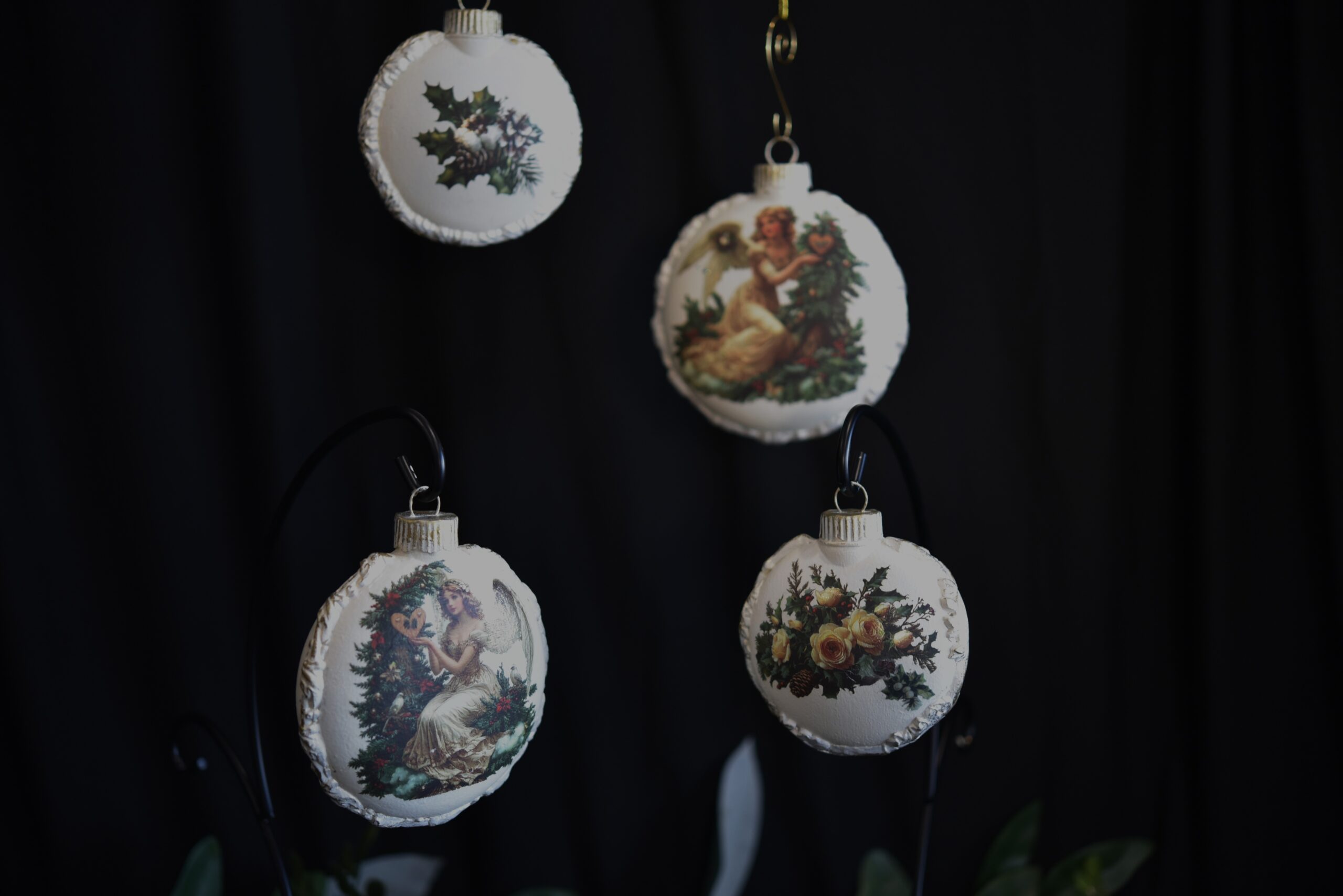 Create a coordinated set of smaller vintage angel ornaments designed to complement the main Victorian Angel pieces. Using the same layered techniques, decorative molds, and classic finishes, these supporting ornaments echo the elegance of antique holiday décor. Finished in creamy neutrals and warm metallic accents, they’re ideal for filling out a tree, grouping together, or pairing with larger statement ornaments for a cohesive, collected look.