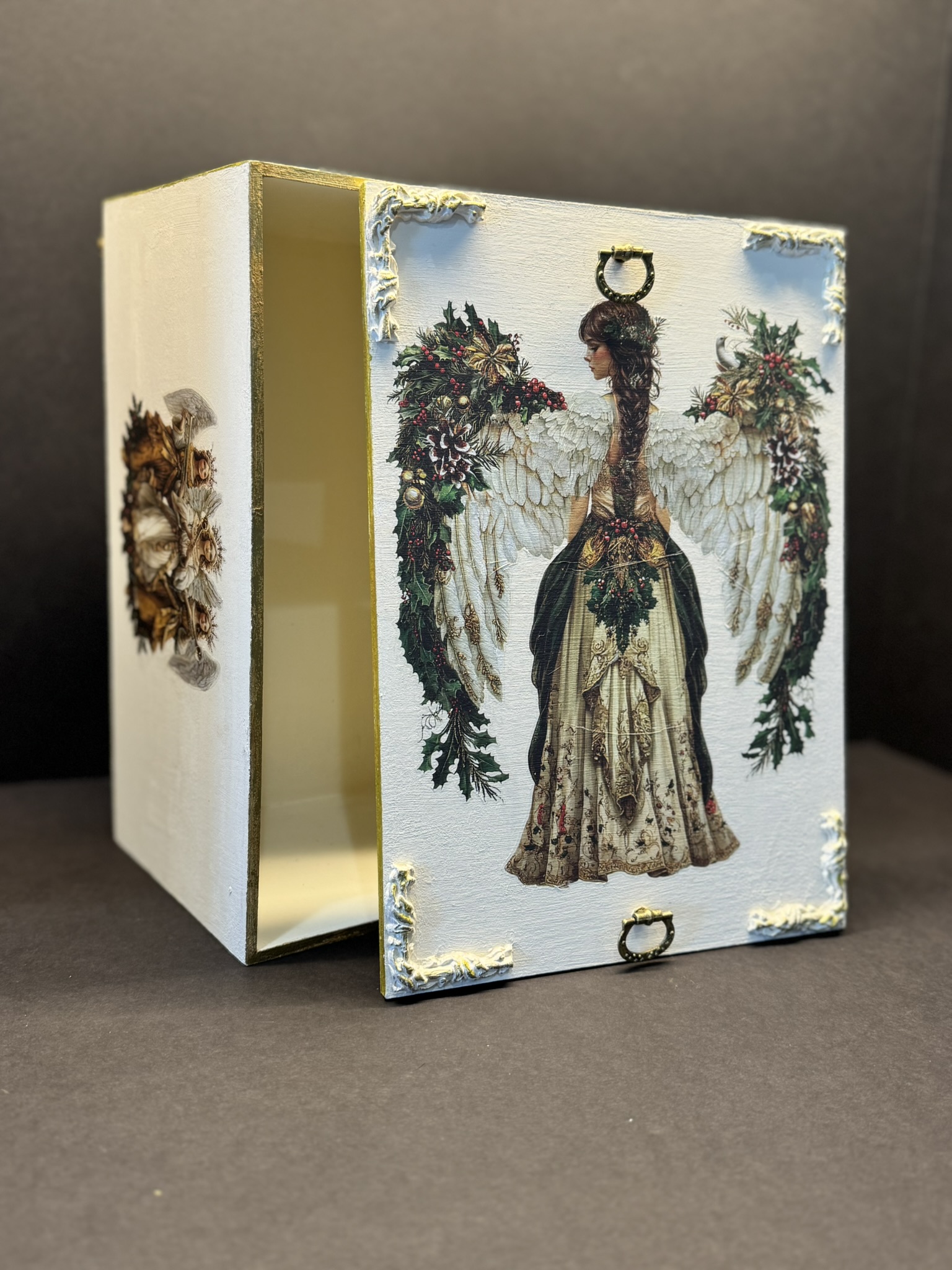 Create a beautiful keepsake trinket box featuring a vintage angel design inspired by old-world charm and timeless décor. In this guided workshop, you’ll layer imagery, textures, and decorative details to transform a simple box into a meaningful piece perfect for storing small treasures or gifting. This project is part of our ongoing Vintage Angel series, designed to build a coordinated collection over time. No experience needed. All materials are provided, and each piece will be uniquely your own.