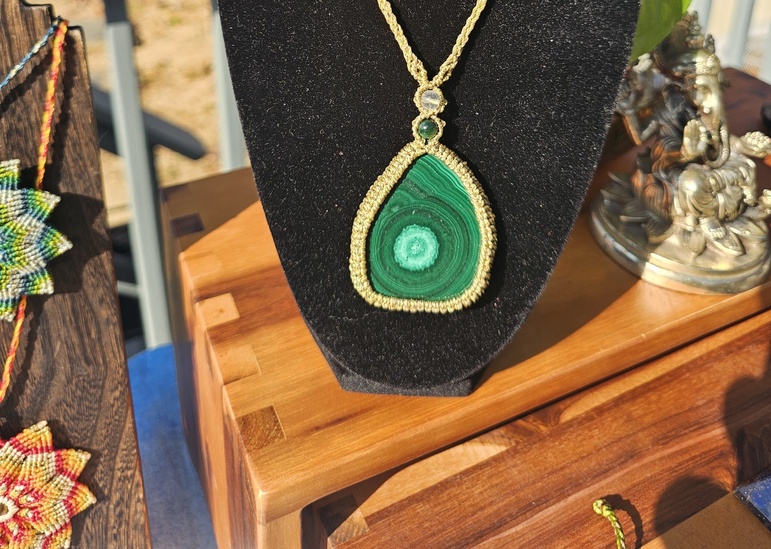 You will take home your finished macramé-wrapped stone, ready to wear, gift, or place on your altar or home. Also, basic macramé skills you can use again in future creations.